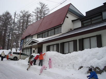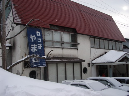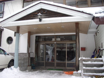 コチラ)、予想通りどこの宿も満室に近い状況です。「う〜ん、どうしようか…」と悩んでいると、家の嫁さんが、「こんなん、片っ端から当たるしかないわ!」と、さっさと電話攻勢を開始。行動力のある嫁である。(感謝)で電話をかけて何十件目であろうか、嫁さんがついに予約できそうな宿を発見!(でかしたぞ!)ここの宿はHPを持っていなくて、最初はスルーしていた宿だったのですが、様々なHPを確認してみても情報は殆ど得られず、嫁さんとしばし話し合い。メリットはゲレンデからむちゃくちゃ近いこと(徒歩1分)、デメリットはとても古そうなこと(ぼら〜ちょは気にしないんですがね)。が、他を探す時間も気力もなく、嫁さんも「別に古くてもいいよ」と言ってくれたのでここで予約することに決定!すぐにрオて予約しました。その宿の名は「ロッヂやまと」さんです!ちなみに外観はこんな感じです。↓