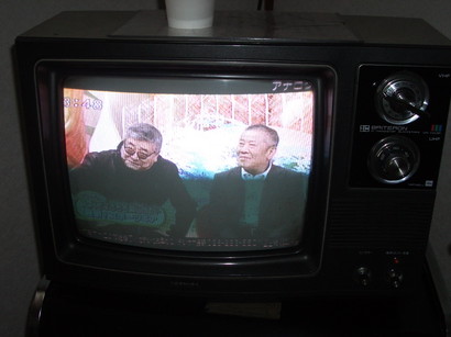 これがそのテレビ。まだまだ現役で活躍しておりました!アナログ受信でしたが(当然)、しっかりと写っていました。発色も良く、感動してしまいました。