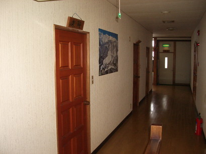 あっという間に栂池高原スキー場に到着!!で、既に紹介しました「ロッヂやまと」さんへ。車を止めさせてもらい、荷物を預かってもらおうと宿の人に確認すると、「もう部屋にお入りいただいて結構ですよ。」とのこと。「えっ!?本当にいいの?」と思わず声が出そうになるのを押さえて満面の笑みで皆さんにそのことを伝えました。へへへ、ラッキー!!「ロッヂやまと」さんは昔風の宿で、真にロッヂという感じでした。ぼら〜ちょはこんな趣のある宿が大好きです。デヘヘ、これもいい感じやなぁ〜!ではその内部も紹介!